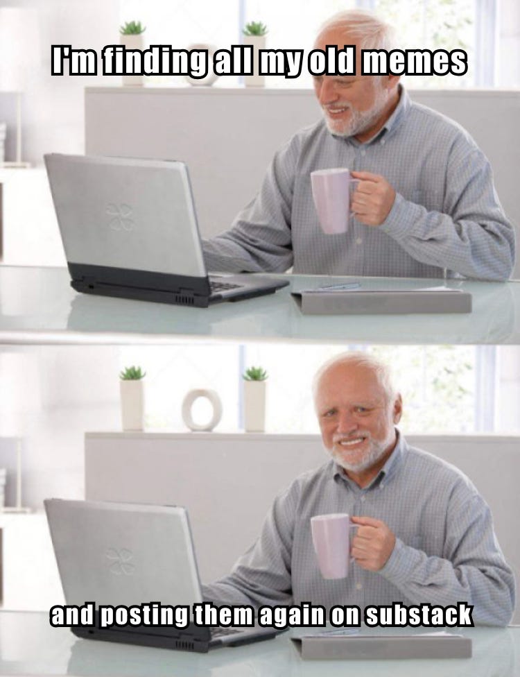 To keep Substack like cool, I suggest you don’t like any meme you have seen before on a different platform. I don’t care how many followers, friends, connections and subscribers people have, posting the same old memes and old perspectives here on Substack is not something you should in any way reward.